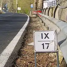 There are numerous historical examples of IIX being used for 8; for example, XIIX was used by officers of the XVIII Roman Legion to write their number.[24][25] The notation appears prominently on the cenotaph of their senior centurion Marcus Caelius (c. 45 BC – 9 AD). On the publicly displayed official Roman calendars known as Fasti, XIIX is used for the 18 days to the next Kalends, and XXIIX for the 28 days in February. The latter can be seen on the sole extant pre-Julian calendar, the Fasti Antiates Maiores.[26] There are historical examples of other subtractive forms: IIIXX for 17,[27] IIXX for 18,[28] IIIC for 97,[29] IIC for 98,[30][31] and IC for 99.[32] A possible explanation is that the word for 18 in Latin is duodeviginti, literally "two from twenty", 98 is duodecentum (two from hundred), and 99 is undecentum (one from hundred).[33] However, the explanation does not seem to apply to IIIXX and IIIC, since the Latin words for 17 and 97 were septendecim (seven ten) and nonaginta septem (ninety seven), respectively.