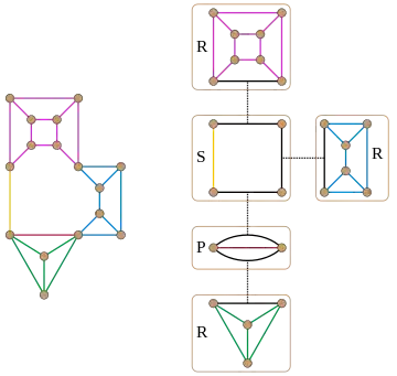 - In an S node, the associated graph is a cycle graph with three or more vertices and edges. This case is analogous to series composition in series–parallel graphs; the S stands for "series".[3]