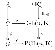 Schur's original motivation for studying the multiplier was to classify projective representations of a group, and the modern formulation of his definition is the second cohomology group . A projective representation is much like a group representation except that instead of a homomorphism into the general linear group , one takes a homomorphism into the projective general linear group . In other words, a projective representation is a representation modulo the center.