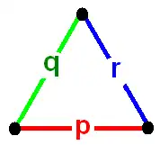 A Coxeter group can be used for a simpler notation, as (p q r) for cyclic graphs, and (p q 2) = [p,q] for (right triangles), and (p 2 2) = [p]×[].