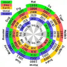 In the Chinese calendar, a system is commonly used in which days or years are named by positions in a sequence of ten stems and in another sequence of 12 branches. The same stem and branch repeat every 60 steps through this cycle.