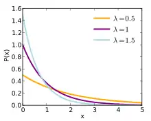 The shape of a distribution will fall somewhere in a continuum where a flat distribution might be considered central and where types of departure from this include: mounded (or unimodal), U-shaped, J-shaped, reverse-J shaped and multi-modal.[1] A bimodal distribution would have two high points rather than one. The shape of a distribution is sometimes characterised by the behaviours of the tails (as in a long or short tail). For example, a flat distribution can be said either to have no tails, or to have short tails. A normal distribution is usually regarded as having short tails, while an exponential distribution has exponential tails and a Pareto distribution has long tails.