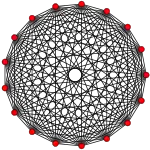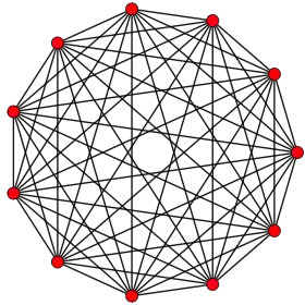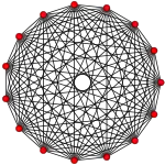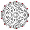 These Petrie polygons (skew orthogonal projections) show all the vertices of the regular simplex on a circle, and all vertex pairs connected by edges.