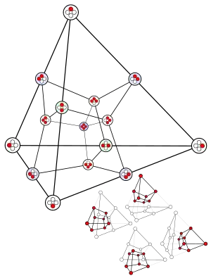 ![]() The total number of faces is always a power of two minus one. This figure (a projection of the tesseract) shows the centroids of the 15 faces of the tetrahedron. |