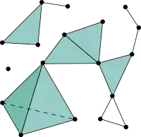 In mathematics, a simplicial complex is a set composed of points, line segments, triangles, and their n-dimensional counterparts (see illustration). Simplicial complexes should not be confused with the more abstract notion of a simplicial set appearing in modern simplicial homotopy theory. The purely combinatorial counterpart to a simplicial complex is an abstract simplicial complex. To distinguish a simplicial complex from an abstract simplicial complex, the former is often called a geometric simplicial complex.[1]: 7