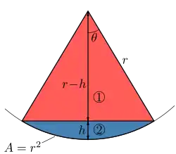 The solid angle subtended by a segment of a spherical cap cut by a plane at angle γ from the cone's axis and passing through the cone's apex can be calculated by the formula[3]