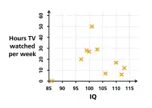 In this example, the arbitrary raw data in the table below is used to calculate the correlation between the IQ of a person with the number of hours spent in front of TV per week [fictitious values used].