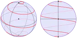 - Spherical helix, tangent indicatrix of a curve of constant precession