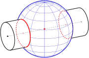 By examining the common solutions of the equations of two spheres, it can be seen that two spheres intersect in a circle and the plane containing that circle is called the radical plane of the intersecting spheres.[14] Although the radical plane is a real plane, the circle may be imaginary (the spheres have no real point in common) or consist of a single point (the spheres are tangent at that point).[15]
