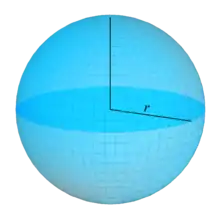 As mentioned earlier r is the sphere's radius; any line from the center to a point on the sphere is also called a radius.[3]