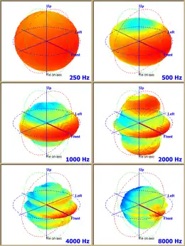 Three dimensional modeling of loudspeaker output patterns can be used to predict their performance. A number of polar plots are required, taken at a wide selection of frequencies, as the pattern changes greatly with frequency. Polar plots help to show that many loudspeakers tend toward omnidirectionality at lower frequencies.