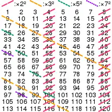 Again, for example, if we begin with the number 42, this time as simply a positive integer, we have its binary representation 101010. This decodes to 20 · 31 · 50 · 71 · 110 · 131 = 3 × 7 × 13 = 273.