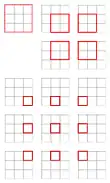 - The number of k × k squares (1 ≤ k ≤ n) in the grid is (n − k + 1)2. These can be counted by counting all of the possible upper-left corners of k × k squares.