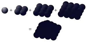 If spheres are packed into square pyramids whose number of layers is 1, 2, 3, etc., then the square pyramidal numbers giving the numbers of spheres in each pyramid are:[7][8]