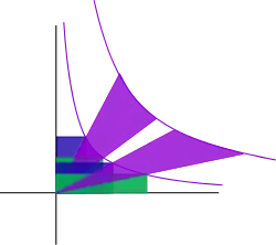 Proof: An argument adding and subtracting triangles of area 1⁄2, one triangle being {(0,0), (0,1), (1,1)}, shows the hyperbolic sector area is equal to the area along the asymptote. The theorem then follows from the lemma.
