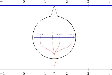 More generally, each finite defines a Dedekind cut on the subset (via the total order on ) and the corresponding real number is the standard part of u.