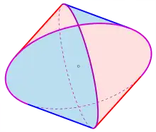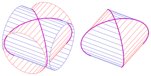In geometry, a Steinmetz solid is the solid body obtained as the intersection of two or three cylinders of equal radius at right angles. Each of the curves of the intersection of two cylinders is an ellipse.