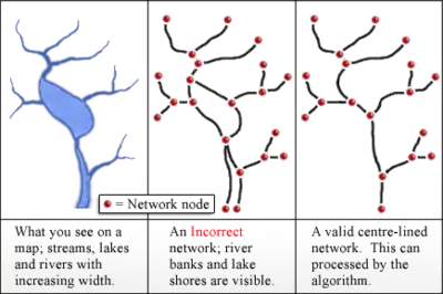 Gleyzer et al. (2004) describe how to compute Strahler stream order values in a GIS application. This algorithm is implemented by RivEX, an ESRI ArcGIS Pro 3.2.x tool. The input to their algorithm is a network of the centre lines of the bodies of water, represented as arcs (or edges) joined at nodes. Lake boundaries and river banks should not be used as arcs, as these will generally form a non-tree network with an incorrect topology.