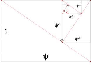 ![]() A supergolden rectangle contains three scaled copies of itself, ψ = ψ-1 + 2ψ-3 + ψ-5 | |