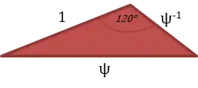 The supergolden ratio is the fourth smallest Pisot number.[5] Because the absolute value of the algebraic conjugates is smaller than 1, powers of generate almost integers. For example: . After eleven rotation steps the phases of the inward spiraling conjugate pair – initially close to – nearly align with the imaginary axis.