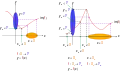 Interpretation for surjective functions in the Cartesian plane, defined by the mapping f : X → Y, where y = f(x), X = domain of function, Y = range of function. Every element in the range is mapped onto from an element in the domain, by the rule f. There may be a number of domain elements which map to the same range element. That is, every y in Y is mapped from an element x in X, more than one x can map to the same y. Left: Only one domain is shown which makes f surjective. Right: two possible domains X1 and X2 are shown.