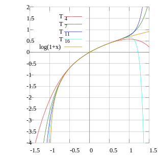 In contrast, also shown is a picture of the natural logarithm function ln(1 + x) and some of its Taylor polynomials around a = 0. These approximations converge to the function only in the region −1 < x ≤ 1; outside of this region the higher-degree Taylor polynomials are worse approximations for the function.