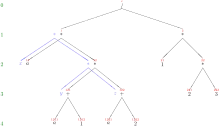 - To each node of a term, its depth (called height by some authors) can be assigned, i.e. its distance (number of edges) from the root. In this setting, the depth of a node always equals the length of its position string. In the picture, depth levels in the black term are indicated in green.
