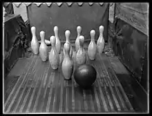 - the arrangement of bowling pins in ten-pin bowling