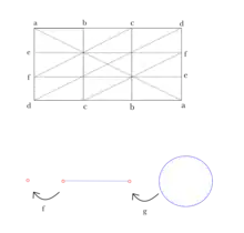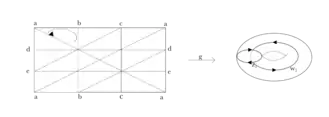 A two dimensional torus, represented as the gluing of a square via the map g, identifying its opposite sites - The projective plane admits a triangulation (see CW-complexes)