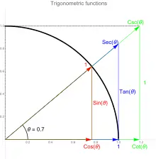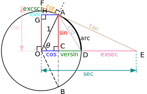 - Versine – for several less used trigonometric functions and unit circle diagrams of all functions