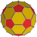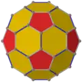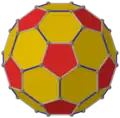 This polyhedron can be constructed from an icosahedron by truncating, or cutting off, each of the 12 vertices at the one-third mark of each edge, creating 12 pentagonal faces and transforming the original 20 triangle faces into regular hexagons.[1][2]