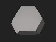 In geometry, the truncated octahedron is the Archimedean solid that arises from a regular octahedron by removing six pyramids, one at each of the octahedron's vertices. The truncated octahedron has 14 faces (8 regular hexagons and 6 squares), 36 edges, and 24 vertices. Since each of its faces has point symmetry the truncated octahedron is a 6-zonohedron. It is also the Goldberg polyhedron GIV(1,1), containing square and hexagonal faces. Like the cube, it can tessellate (or "pack") 3-dimensional space, as a permutohedron.