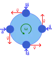 which is a vector perpendicular to both ω and v(t) of magnitude ω |v| = ω2 r and directed exactly opposite to r(t).[1]