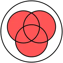 In set theory, the union (denoted by ∪) of a collection of sets is the set of all elements in the collection.[1] It is one of the fundamental operations through which sets can be combined and related to each other. A nullary union refers to a union of zero () sets and it is by definition equal to the empty set.