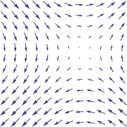 In vector calculus and physics, a vector field is an assignment of a vector to each point in a space, most commonly Euclidean space .[2] A vector field on a plane can be visualized as a collection of arrows with given magnitudes and directions, each attached to a point on the plane. Vector fields are often used to model, for example, the speed and direction of a moving fluid throughout three dimensional space, such as the wind, or the strength and direction of some force, such as the magnetic or gravitational force, as it changes from one point to another point.