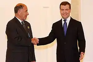 Arnold (left) and Russia's president Dmitry Medvedev