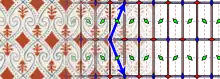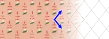 In the present article, a pattern is a repetitive parallelogram of minimal area in a determined position on the wallpaper. Image 1 shows two parallelogram‑shaped patterns — a square is a particular parallelogram —. Image 3 shows rhombic patterns — a rhombus is a particular parallelogram —.