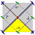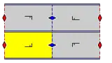 - A cross, ×, occurs when a glide reflection is present and indicates a crosscap on the orbifold. Pure mirrors combine with lattice translation to produce glides, but those are already accounted for so need no notation.
