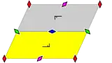- In the case of only rotational symmetry of order 2, and the case of no other symmetry than translational, the cell is in general a parallelogram (parallelogrammatic or oblique lattice, itself p2). Special cases: rectangle, square, rhombus, hexagonal unit cell.