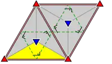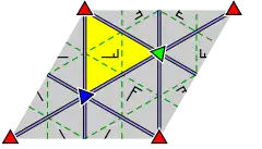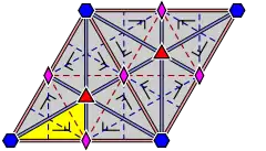- In the 5 cases of rotational symmetry of order 3 or 6, the unit cell consists of two equilateral triangles (hexagonal lattice, itself p6m). They form a rhombus with angles 60° and 120°.
