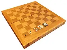 The problem appears in different stories about the invention of chess. One of them includes the geometric progression problem. The story is first known to have been recorded in 1256 by Ibn Khallikan.[4] Another version has the inventor of chess (in some tellings Sessa, an ancient Indian Minister) request his ruler give him wheat according to the wheat and chessboard problem. The ruler laughs it off as a meager prize for a brilliant invention, only to have court treasurers report the unexpectedly huge number of wheat grains would outstrip the ruler's resources. Versions differ as to whether the inventor becomes a high-ranking advisor or is executed.[5]