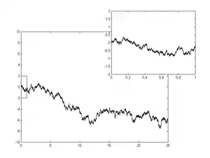 This is a random step function. Increments of are independent because the are independent. For large n, is close to by the central limit theorem. Donsker's theorem asserts that as , approaches a Wiener process, which explains the ubiquity of Brownian motion.[5]