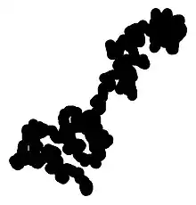 In the mathematical field of probability, the Wiener sausage is a neighborhood of the trace of a Brownian motion up to a time t, given by taking all points within a fixed distance of Brownian motion. It can be visualized as a sausage of fixed radius whose centerline is Brownian motion. The Wiener sausage was named after Norbert Wiener by M. D. Donsker and S. R. Srinivasa Varadhan (1975) because of its relation to the Wiener process; the name is also a pun on Vienna sausage, as "Wiener" is German for "Viennese".