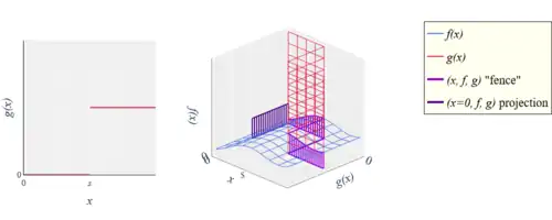 the fence has a rectangular "gate" of width 1 and height equal to . Thus the gate, and its projection, have area equal to the value of the Riemann-Stieljes integral.