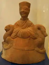 A year after Zhang presented his seismoscope to the court, officials and candidates were asked to provide comments about a series of recent earthquakes which could be interpreted as signs of displeasure from Heaven.[18] The ancient Chinese viewed natural calamities as cosmological punishments for misdeeds that were perpetrated by the Chinese ruler or his subordinates on earth. In Zhang's memorial discussing the reasons behind these natural disasters, he criticized the new recruitment system of Zuo Xiong which fixed the age of eligible candidates for the title "Filial and Incorrupt" at age forty.[18] The new system also transferred the power of the candidates' assessment to the Three Excellencies rather than the Generals of the Household, who by tradition oversaw the affairs of court gentlemen.[18] Although Zhang's memorial was rejected, his status was significantly elevated soon after to Palace Attendant, a position he used to influence the decisions of Emperor Shun.[17][18] With this prestigious new position, Zhang earned a salary of 2,000 bushels and had the right to escort the emperor.[30]