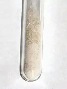 The L-(+)-tartaric acid isomer of tartaric acid is industrially produced in the largest amounts. It is obtained from lees, a solid byproduct of fermentations. The former byproducts mostly consist of potassium bitartrate (KHC4H4O6). This potassium salt is converted to calcium tartrate (CaC4H4O6) upon treatment with calcium hydroxide "milk of lime" (Ca(OH)2):[20]