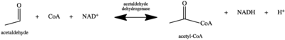 Acetaldehyde + NAD+ + Coenzyme A ↔ Acetyl-CoA + NADH + H+