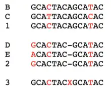Candidates used for ASR are often selected based on the particular property of interest being studied – e.g. thermostability.[9] By selecting sequences from either end of a property's range (e.g., psychrophilic proteins and thermophilic proteins) but within a protein family, ASR can be used to probe the specific sequence changes that conferred the observed biophysical effect – such as stabilising interactions. Consider in the diagram, if sequence 'A' encoded a protein that was optimally functional at neutral pHs and 'D' in acidic conditions, sequence changes between '5' and '2' may illustrate the precise biophysical explanation for this difference. As ASR experiments can extract ancestors that are likely billions of years old, there are often tens if not hundreds of sequence changes between ancestors themselves and ancestors and extant sequences – because of this, such sequence-function evolutionary studies can take a lot of work and rational direction.[1][6][14]
