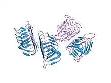 ![]() Structure of Choristoneura fumiferana (spruce budworm) beta-helical antifreeze protein[2] | |||||||||