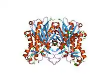 - PDB: 1ZOW; Qiu X, Choudhry AE, Janson CA, Grooms M, Daines RA, Lonsdale JT, Khandekar SS (August 2005). "Crystal structure and substrate specificity of the β-ketoacyl-acyl carrier protein synthase III (FabH) from Staphylococcus aureus". Protein Sci. 14 (8): 2087–94. doi:10.1110/ps.051501605. PMC 2279320. PMID 15987898.